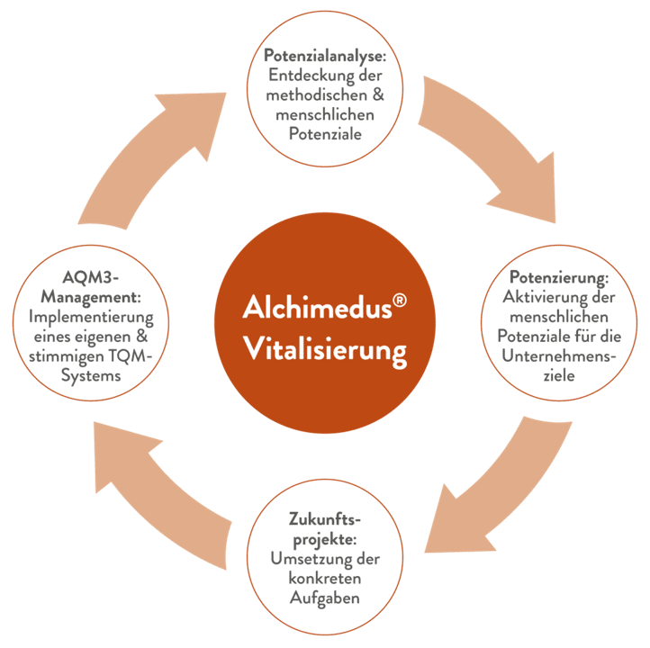 - Ihren Entwicklungsprozess gestalten wir mit Alchimedus® effizienter, wirkungs- und sinnvoller, da wir sowohl betriebswirtschaftliche als auch ganzheitliche Kriterien für den Unternehmenserfolg berücksichtigen