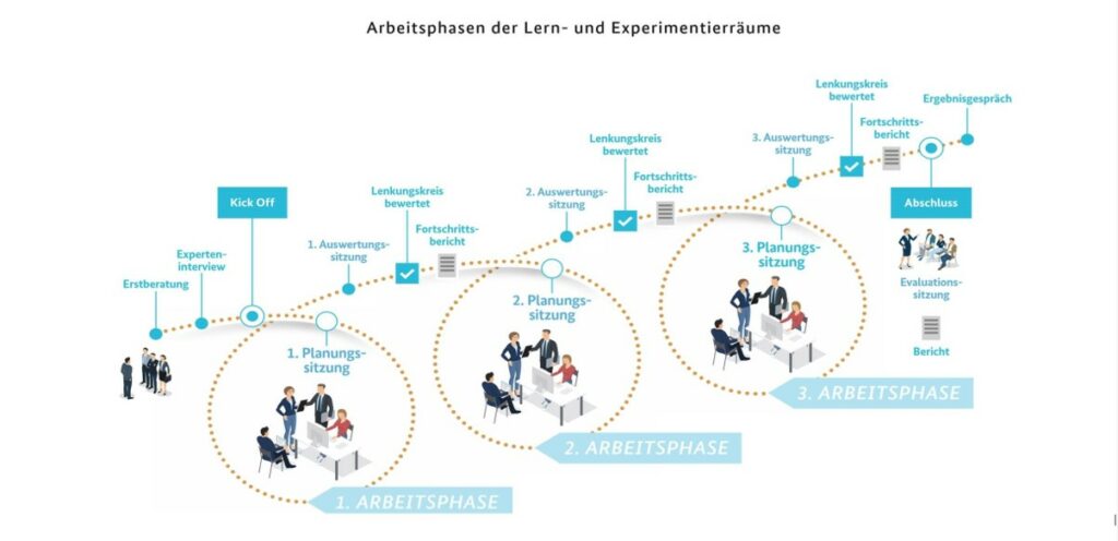 - Ziel ist es, dass Unternehmen eine mitarbeiterorientierte, agile Arbeitsmethode ausprobieren und erlernen und ihren Blick für den ganzheitlichen, nachhaltigen Ansatz einer mitarbeiterorientierten Personalpolitik weiten, der die Beschäftigten konsequent mit einbezieht.